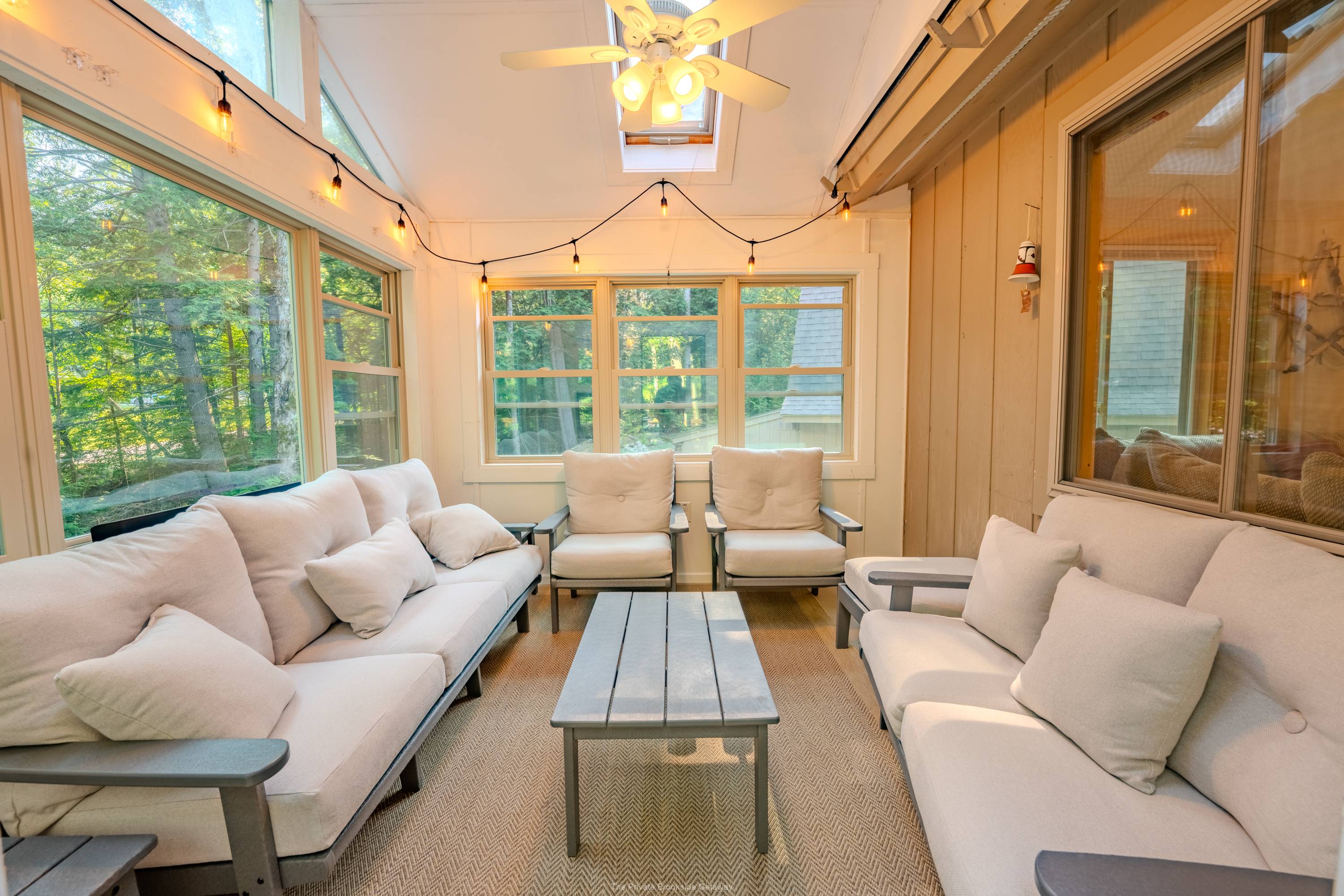 - Relax Indoors & Out: Cozy up by the electric fireplace upstairs or the rustic pellet stove downstairs. Enjoy a private deck, three-season sunroom, and the sound of the babbling brook.